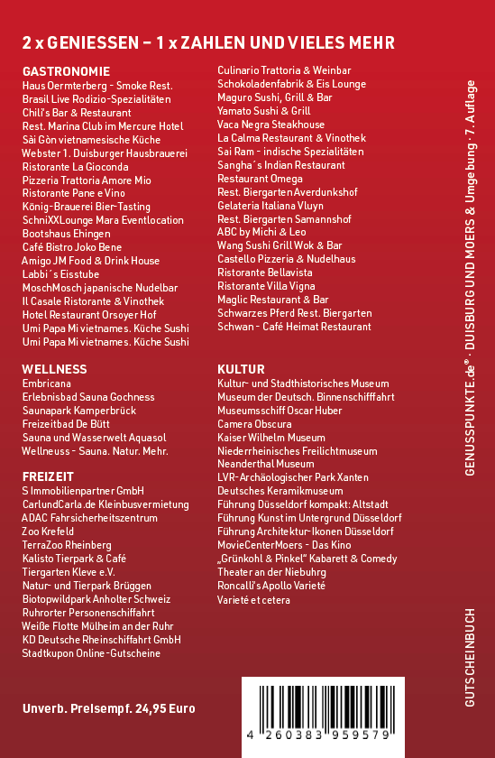 Produktionformationen zu "Gutscheinbuch GenussPUNKTE Duisburg, Moers mit Kamp-Lintfort und Neukirchen-Vluyn 2026 gültig bis 28.02.2027"