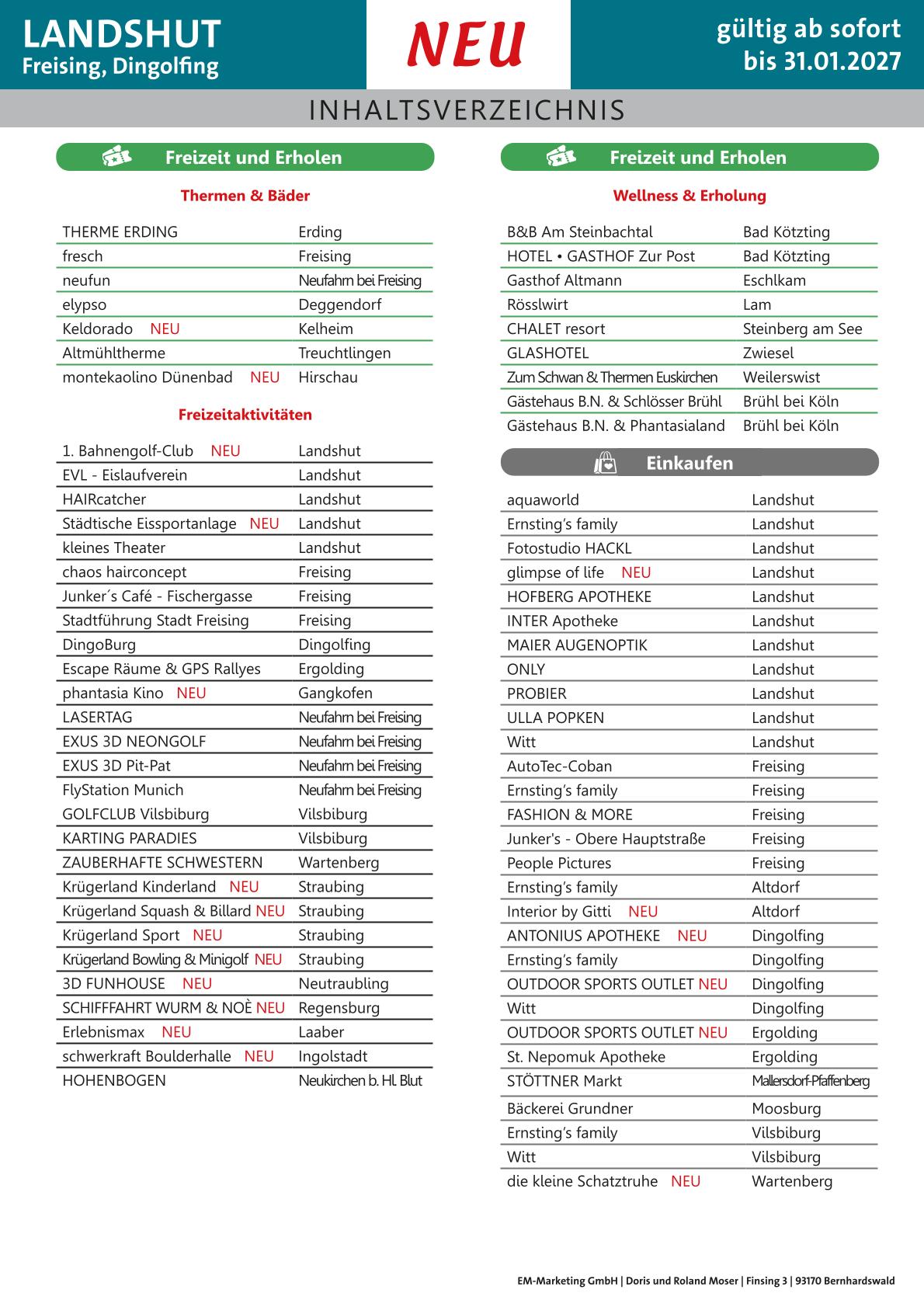 155 Anbieter aus Landshut-Freising und der Region stellen mit Texten und Bildern ihre reichhaltigen Angebote in dem Gutscheinbuch GutscheinGeniessen Landshut-Freising vor, stets verbunden mit einem oder mehreren Gutscheinen.